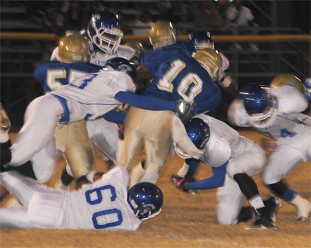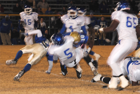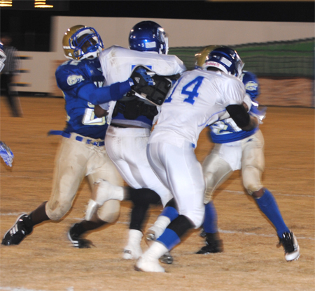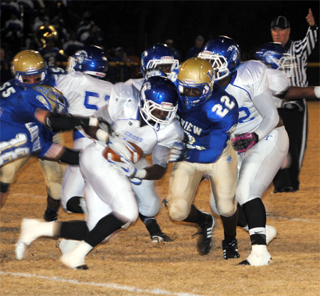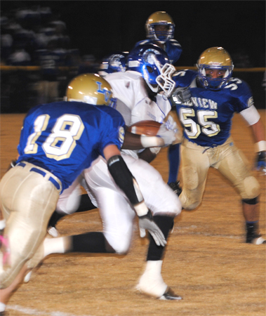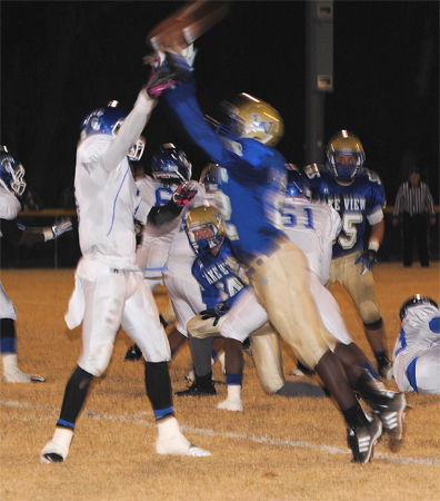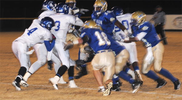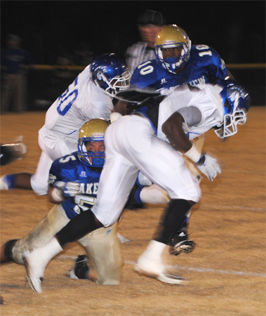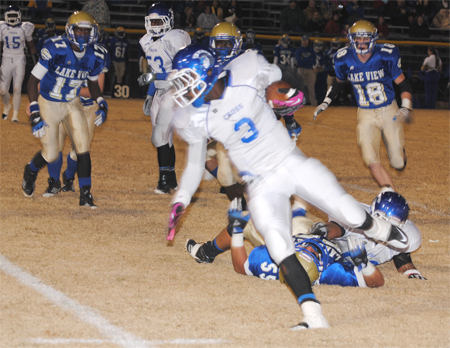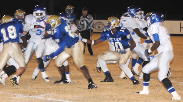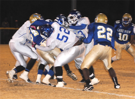 Lake View’s Corenthious Brunson led the Wild Gators with 152 yards rushing on 13 carries with two touchdowns. Darius Leonard carried 15 times for 102 yards and two touchdowns; Kendrix Worley carried 10 times for 50 yards; and Chris Ford carried seven times for 35 yards and a touchdown. Ford went 1-5 in passing with Leonard receiving for 28 yards.