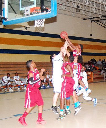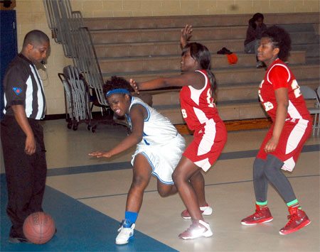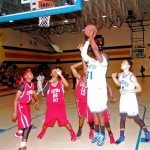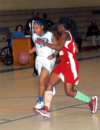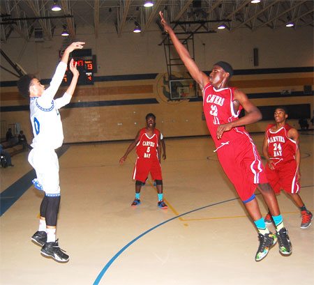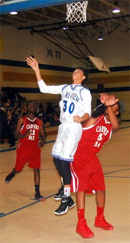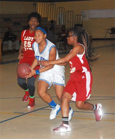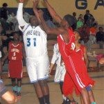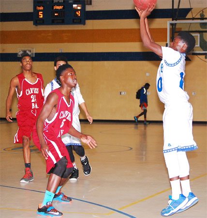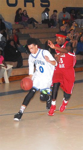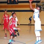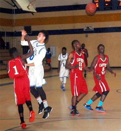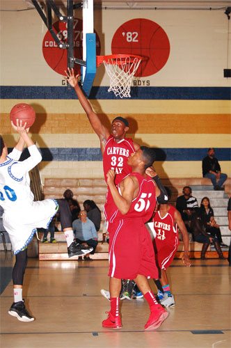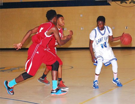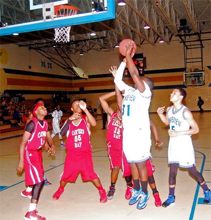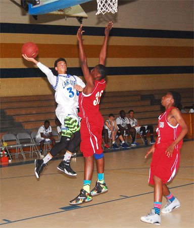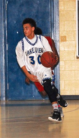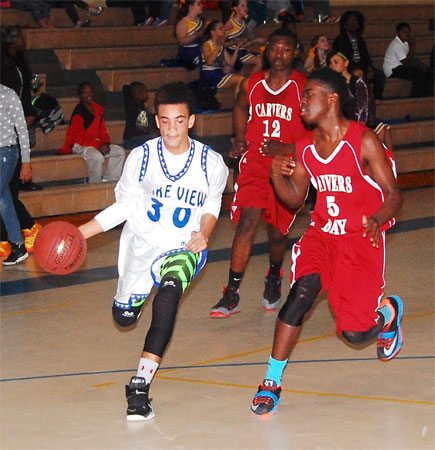 Lake View’s #30 Darius Ford shoots past a Carvers Bay defender.